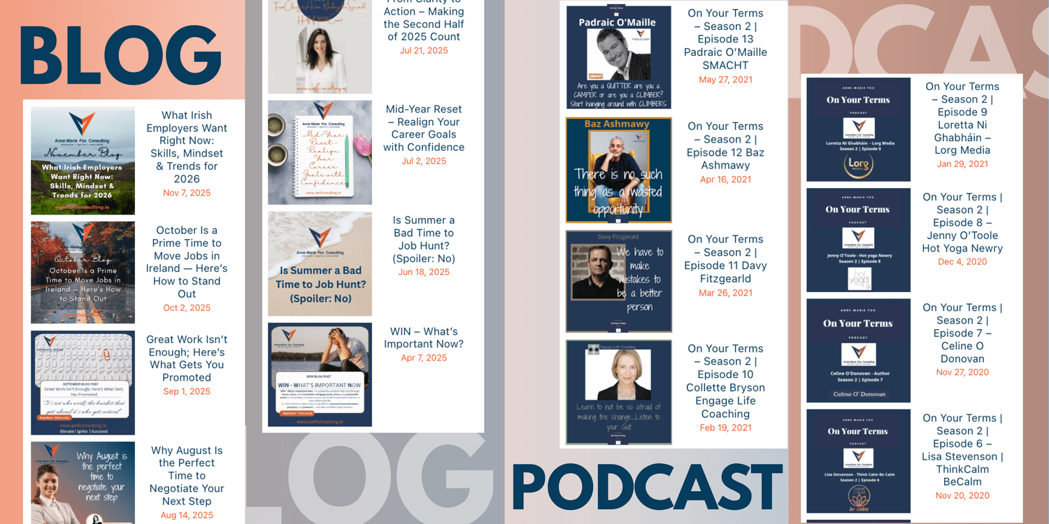 Anne-Marie regularly publishes articles on career strategy and labour market trends through her On Your Terms content hub, including: